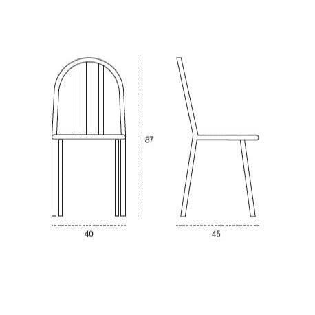 Materiali: Struttura in tubo di acciaio verniciato. Seduta in lamiera