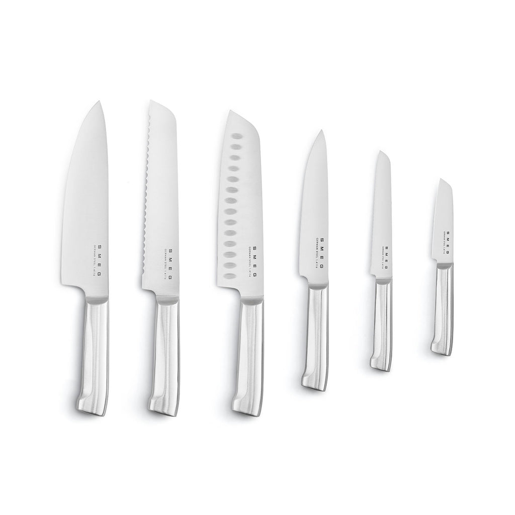 - 6 coltelli esclusivi inclusi: uno spelucchino, un coltello universale, uno per carne, un santoku, uno per il pane e uno da cuoco.