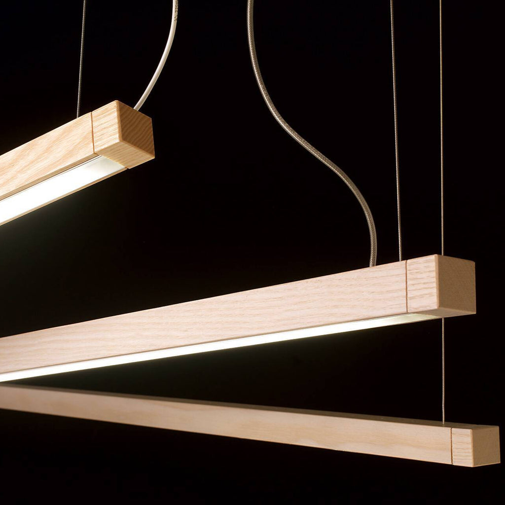 Disponibile in 3 finiture naturali: legno rovere chiaro naturale, legno rovere curo tinto noce, legno zebrano naturale e 3 dimensioni 100cm, 150cm, 190cm rispettivamente con potenze differenziate per i diversi usi necessari: 20w, 30w, 38w.