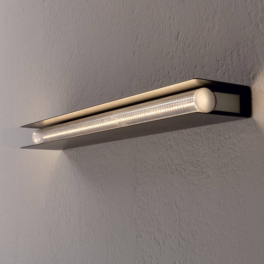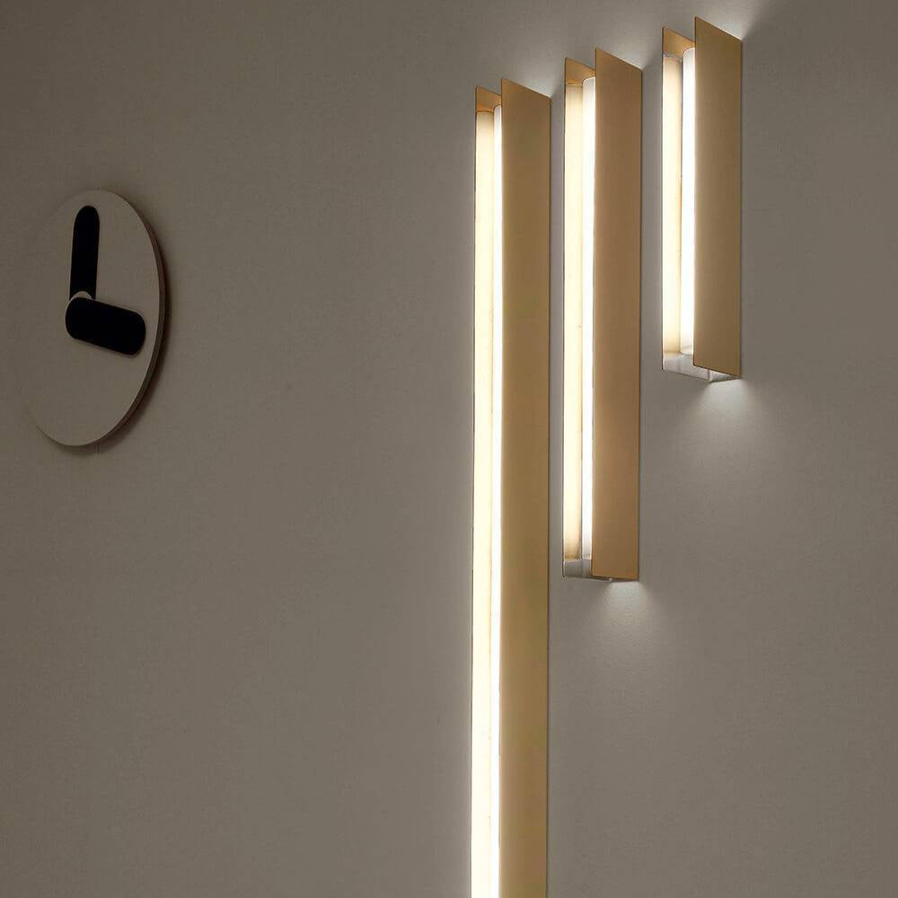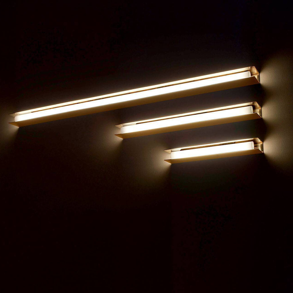 Lampada da parete dal design pulito e lineare, personalizzabile nell'installazione sia singolarmente che in composizione. Rende infinite possibilità di progetto per creare spazzi sempre più creativi ed illuminare in maniera uniforme. La canalina in ottone o acciaio verniciato, accoglie una sorgente luminosa classica linestra rivisitata in versione led. Struttura in acciaio o in solido ottone.